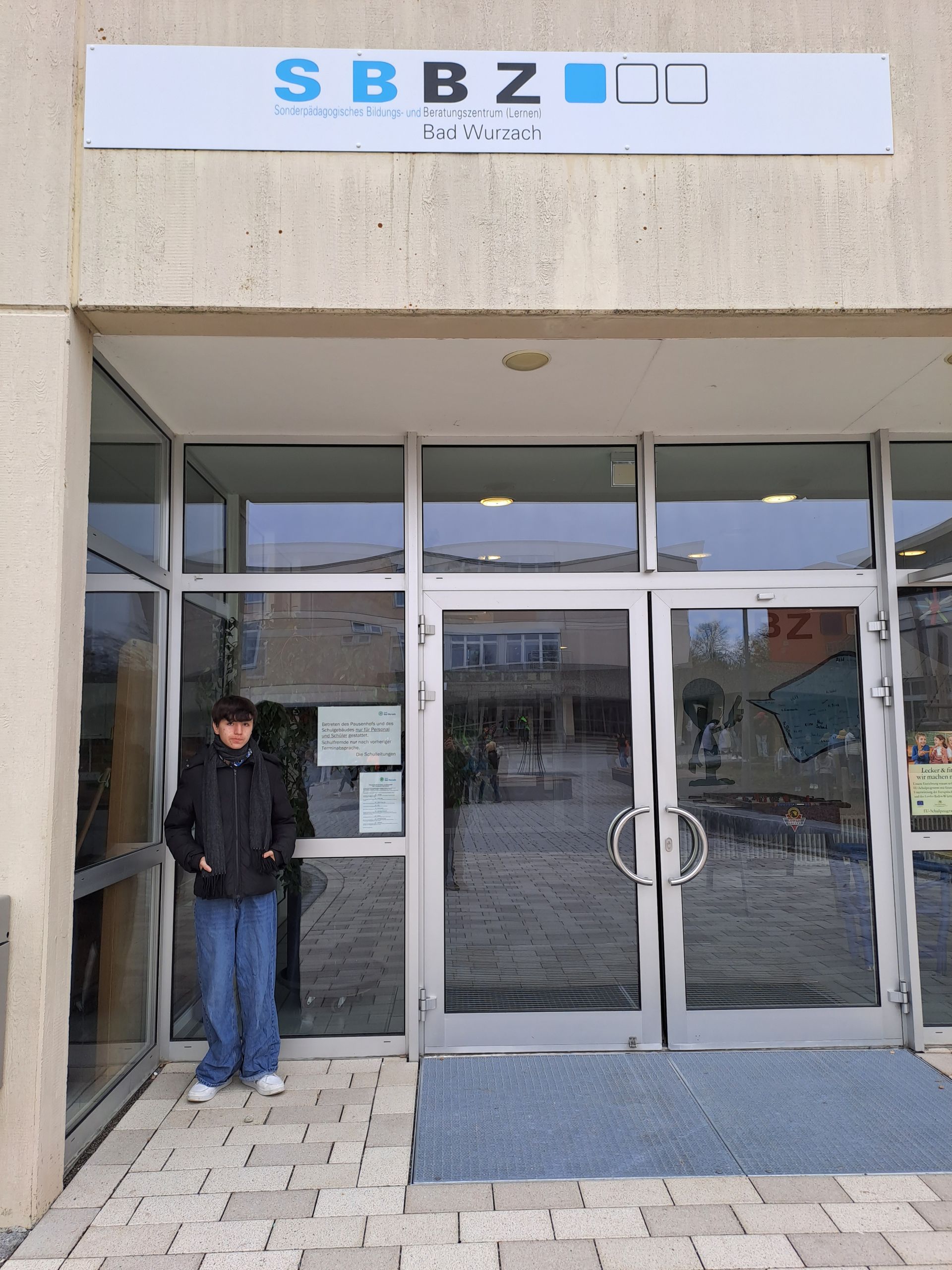 Beide Oberstufenklassen waren im Institut für soziale Berufe in Bad Wurzach zu Besuch. Um 10.45 Uhr sind wir vom SBBZ zum Institut im rechten Flügel vom Schloss gelaufen. Als wir ankamen wurden wir sehr nett von Herrn Schmal (Schulleiter) und Herrn Motz empfangen. Anschließend wurden wir in vier Gruppen eingeteilt. SchülerInnen vom zweiten Kurs hatten in verschiedenen Räumen Sachen für uns vorbereitet. In einem Raum haben wir etwas über Hygiene gelernt, z.B. wie man die Handschuhe richtig auszieht, wenn sie voller Kot sind. Im anderen Raum haben wir einen Anzug anbekommen der simuliert wie es ist, wenn man alt ist. Wir durften auch Rollstuhl fahren und schieben und mit einem Rollator laufen. Es gab noch die Ernährung: Wie gebe ich das Essen richtig ein oder wie fühlen sich die Leute, die nichts mehr sehen können. Um das zu spüren durften wir verschiedene Brillen aufsetzen. Und es gab noch einen Raum in dem wir den Blutdruck messen durften und den Insulinwert bestimmen konnten.