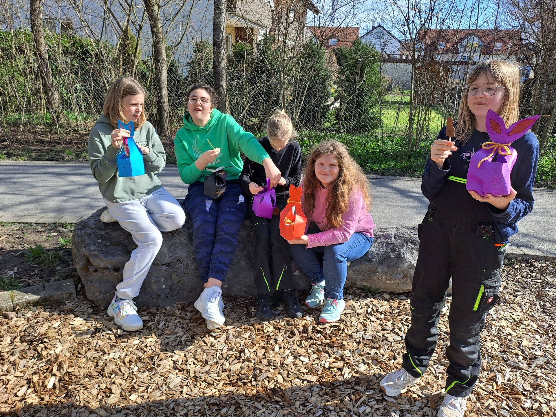 Währenddessen muss unbemerkt der Osterhase die selbstgebastelten Osternester gefüllt und versteckt haben, sodass wir alle noch gemeinsam auf die Suche gehen konnten.