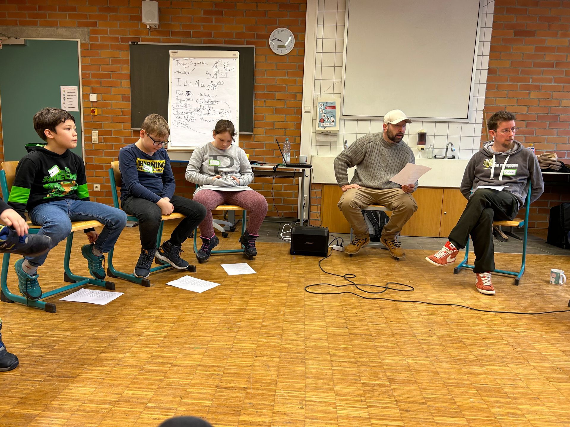 Die "Rapagogen" Meon und Tobi von Who.Am.I waren bei uns an der Schule und haben mit uns ein Rap-Projekt gemacht. Sie haben mit allen vier Klassen gearbeitet. Sie haben uns ihre Lieder vorgerappt und mit uns eigene Raps geschrieben. Alle fanden es cool, dass sie gekommen sind und es uns gezeigt haben. Wir würden uns sehr freuen, wenn sie nochmal kommen würden, weil wir fanden es lustig und es hat viel Spaß gemacht.